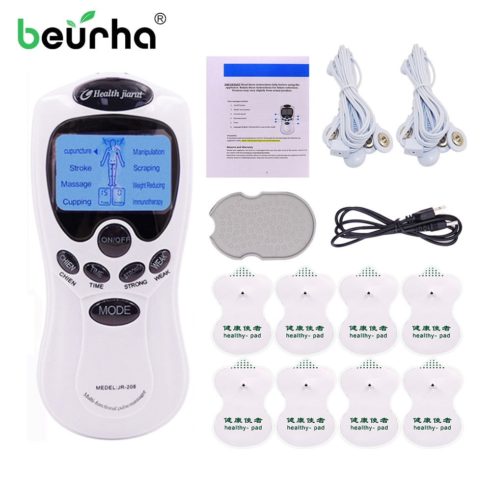 ✅ 8 almofadas de eletrodos (4 pares, fazendo com que o uso do aparelho seja feito por até 4 pessoas simultaneamente);